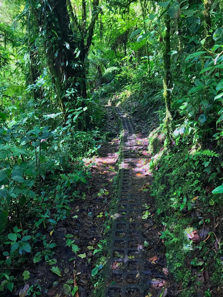I bought some oranges and caught the bus from Santa Elena up to the cloud forest reserve where there were quite a few people. I had to wait a few minutes for a couple of groups to leave because the reserve was at full capacity. TO be fair, I was arriving at peak non-birding tourist time, at about 11am (eek for the birders reading this, I know). I knew what I was getting into though, and although I didn’t see many birds at all, I really enjoyed walking the trails, which were immaculate and extraordinarily well-built: