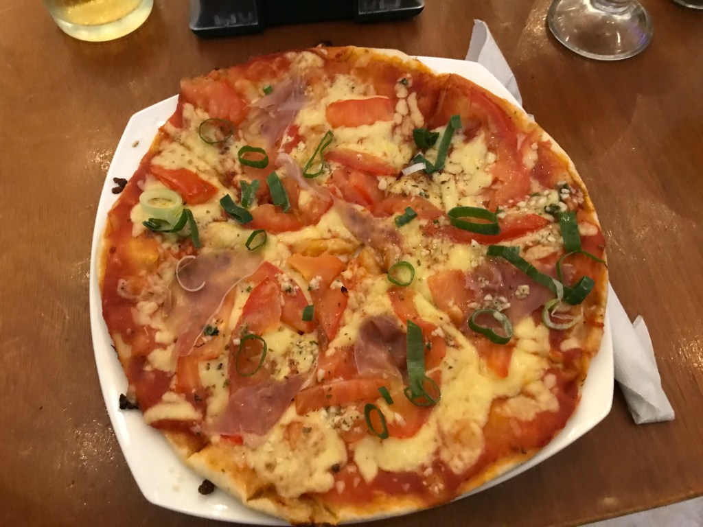 Before I hopped on the bus I asked one of the guides if they knew anyone who might be available as a bird guide one morning in the next few days. For context, I plan on spending at least one day with a guide in each place I visit, and offsetting the cost by eating rice and beans for a couple of days. There’s probably not a better way to get acquainted with local conservation projects and to learn local birds. She gave me a name and I gave her my WhatsApp number, and she said she’d ask him to contact me. I hopped on the bus and rode back down to Santa Elena, where I had a great personal pizza at the restaurant next to Bar Amigos: