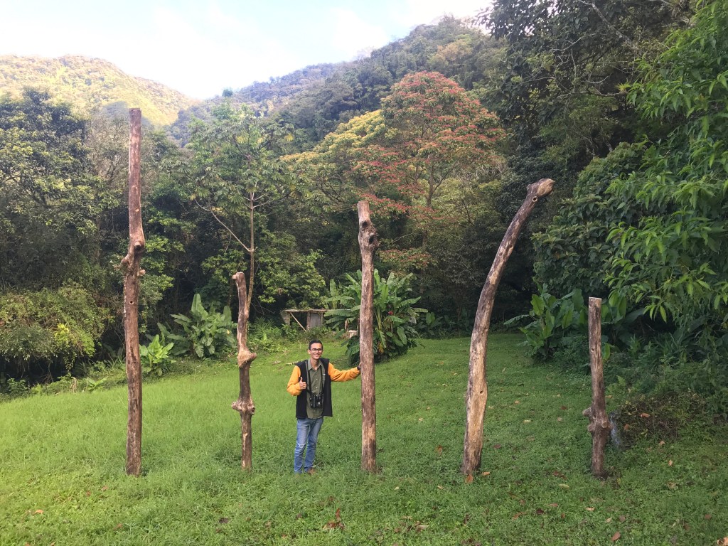 Sergio had a similar story about a different place. his family owns the property called “Mirador el Pizote” (Coatimundi View) which seems to be the best place in the world to see King Vultures up close, since they have built a blind very close to a roosting site. Sergio explained that guides would come to visit, and he started shadowing his friend several years ago to lear to identify birds: “The client would follow my friend, and I would follow behind the client.” He said that once he was confident enough to start guiding on his own, he also set about improving the family’s property to attract other birds. He set up feeders and blinds, and did another thing that I thought was really cool: he took dead logs, drilled 1.5-2-inch holes in them and placed them into the ground as posts, within camera distance of the blinds. Soon after he installed them, Woodpeckers came and continued excavating the holes and started nesting right in view of anyone sitting in the blind. To find a natural woodpecker nest and set up a blind would take weeks, this strategy brought the nest to the blind.
