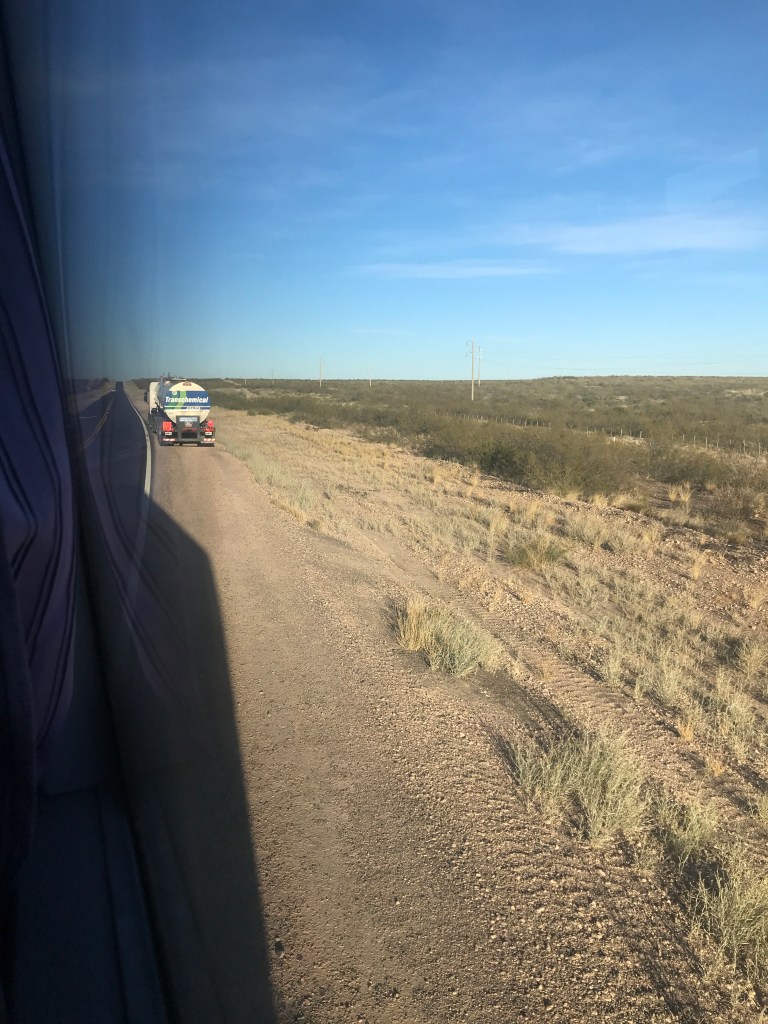 I am suuuper digging buses as a form of transport, it’s so much more relaxed than taking the plane, you just walk to the ticket window, hand over some cash and they hand you a ticket, then you arrive 15 minutes before the departure time (Very Important) hop on and sit in your seat. At the stops along the way you can buy whatever sandwiches, chocolates and sodas your heart desires, and you get to really see the countryside out the window. There of course are some hiccups, like on this trip when something happened with the oil system and we had to chill in the desert for a couple of hours to wait for the repair man.