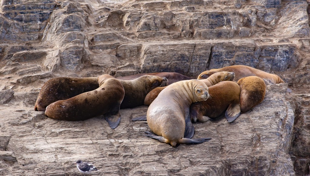 Once we got out of the harbor we started seeing other stuff like Chilean Skuas, South American Terns and lots of Giant Petrels. The boat first stopped at a colony of Imperial Cormorants, where I saw my first Sea Lions and Snowy Sheathbills!