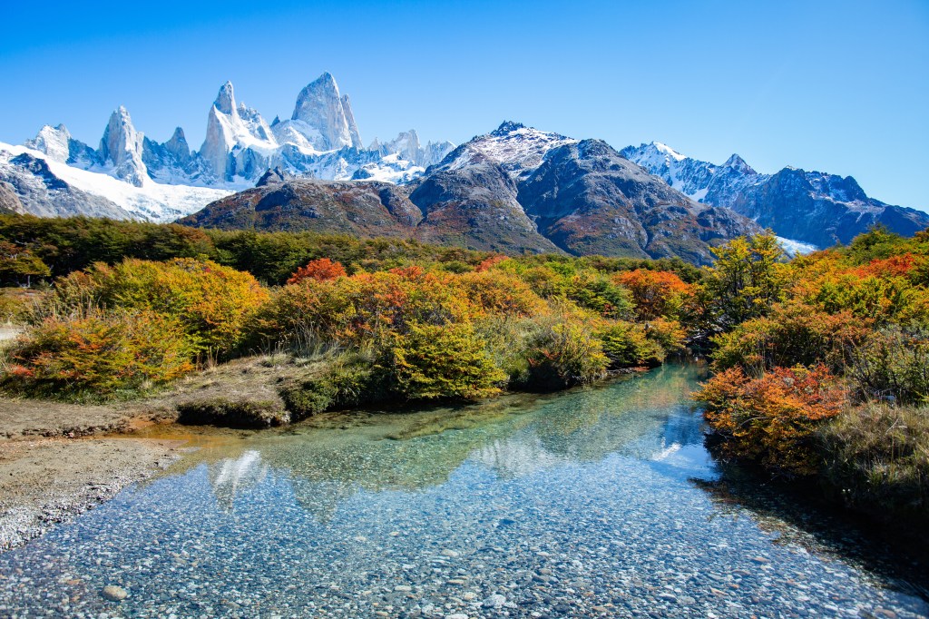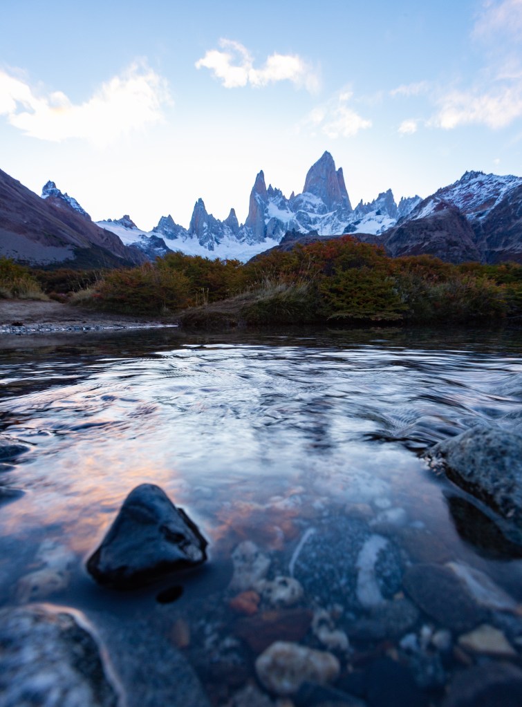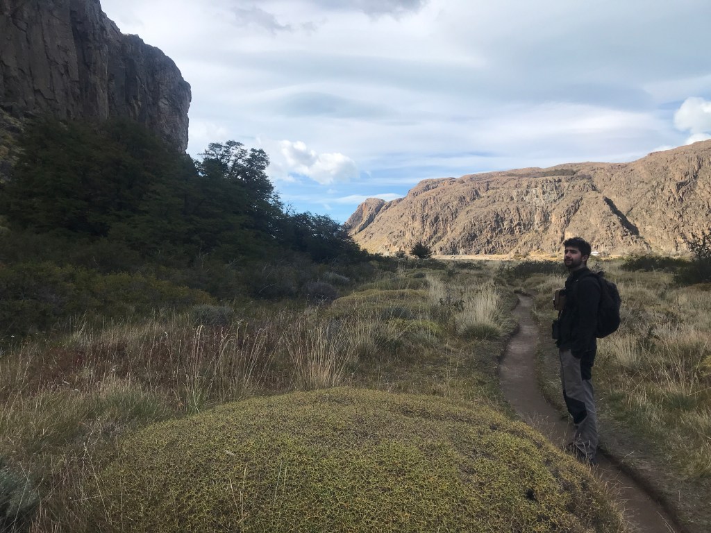 After a few more stops to take pictures of the scenery, we arrived in the town at about 10am. We bought a couple of sandwiches and headed up the trail to a high glacial lake called Laguna de los Tres. It was a beautiful trail that led through meadows of stunted Lenga and Ñire trees that were just starting to change color. This made for a pretty stunning foreground in front of the mountain itself: