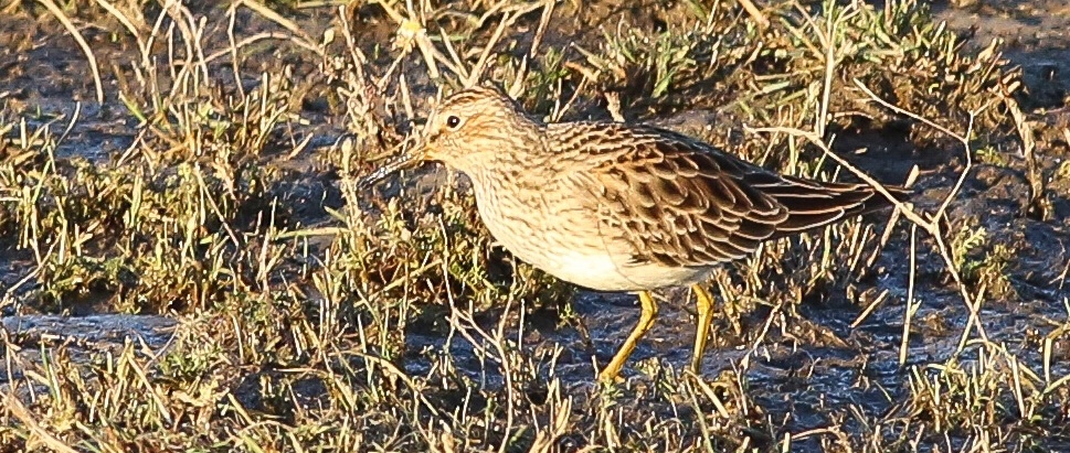As we were making our way there, Cris pointed at a small pond on the roadside. “Check it out, there’s always something here when this field has water”. He was right—a Red Phalarope was foraging at one end, spinning in place in the way that only phalaropes do. This was a pretty unusual species for the region so we pulled over. There was also a Greater Yellowlegs, another bird that would soon be headed to N. America, and a Pectoral Sandpiper, which was a lifer for Cris and an even rarer bird than the phalarope. He laughed when I explained that in my part of Tennessee, Pectoral Sandpiper is pretty much the most common shorebird to be found during spring and fall. Here are some photos from the pond: