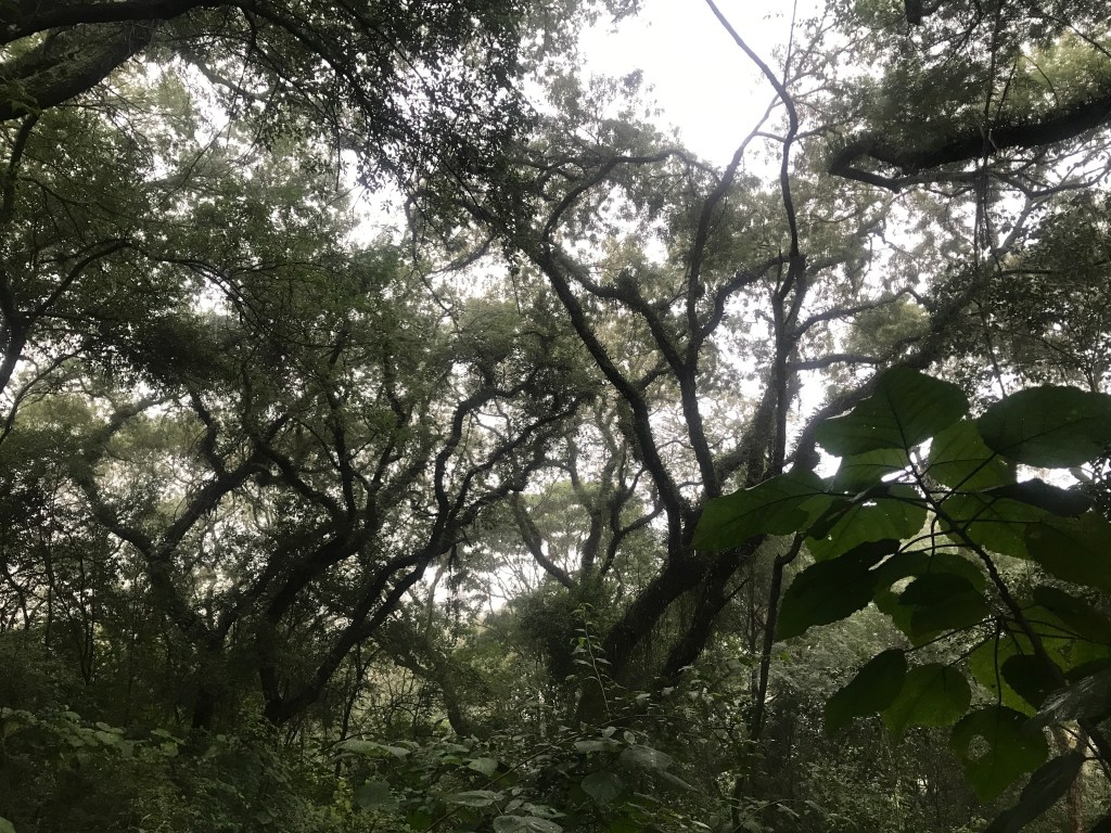 The trail was very well signposted and had species markers at quite a number of different trees. The fern-laden branches had that particularly exciting and outlandish look, shrouded in fog.