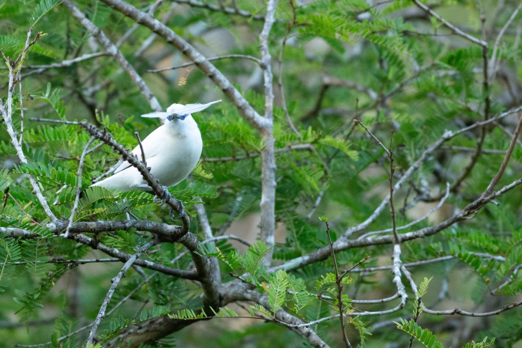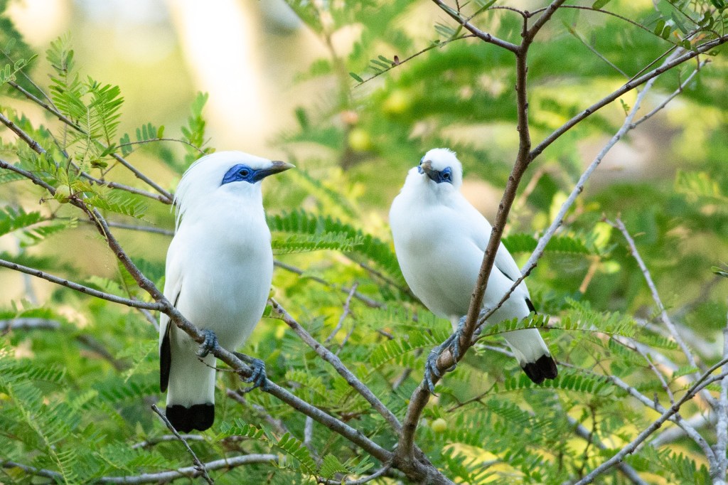 The reason for both lies in the phenomenal popularity of the Indonesian caged bird trade. This absolutely fantastic, snow-white, blue-faced myna species was trapped nearly to extinction within its extremely small range of the western peninsula of Bali. Thankfully this meant that there were plenty of Mynas (also known as Bali Starlings, or Jalak Putih in Bahasa Indonesia) in captivity, which were used to help with a captive breeding and release program. The protection of the park seems to have been pretty effective, and now there are over 500 in two populations in the area: some on an island and some on the mainland of Bali, almost all within the national park.